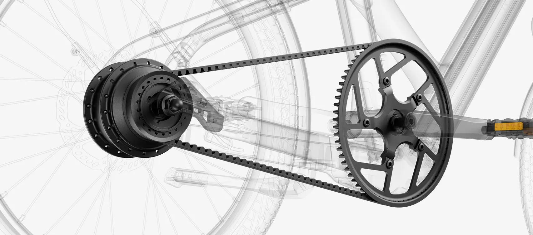 The maintenance-free Michelin belt drive keeps rides quiet, clean, and carefree. No grease, no rust. Just smooth, simple cycling that stays that way.